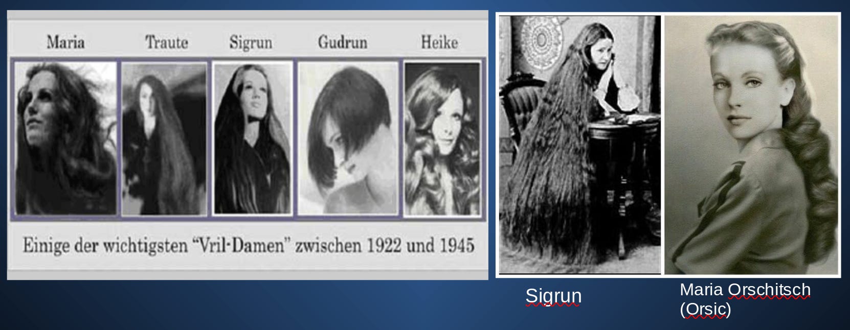 The core of Vril was formed by a group of female psychic mediums led by the Thule Gesellschaft medium Maria Orsitsch (Orsic) of Zagreb, who claimed to have received communication from Aryan aliens living on Alpha Tauri, in the Aldebaran system. Allegedly, these aliens had visited Earth and settled in Sumeria, and the word Vril was allegedly formed from the ancient Sumerian word Vri-Il, “like god”.