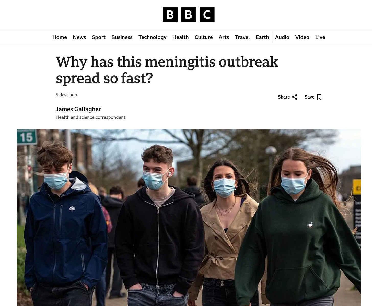 To scare people even more, this meningitis outbreak needs to be something special. The BBC states: “This meningitis outbreak is deeply unusual and defies easy explanation.”