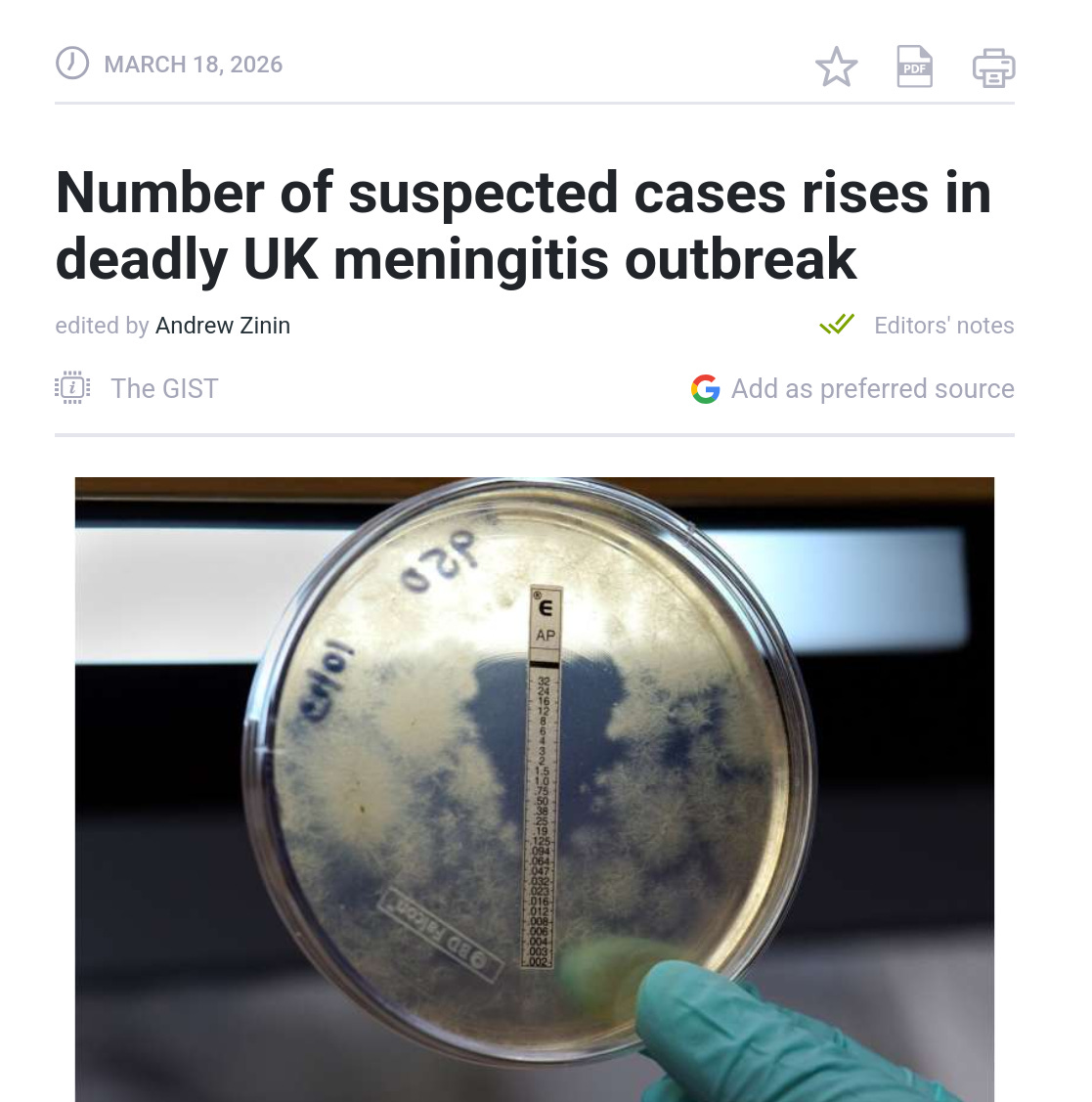 ‘The number of meningitis cases being probed by UK authorities has risen to 20, health officials said Wednesday, following an “unprecedented” deadly outbreak centered on a university.