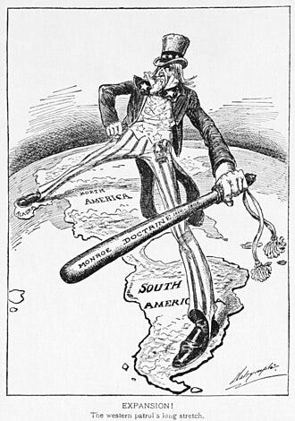 Trump is working out the Monroe Doctrine, a doctrine mentioned first in 1823 by President James Monroe. It’s aim is to secure the safety of the America’s by establishing the US as a world power. To become strong by itself and isolate itself from foreign powers.